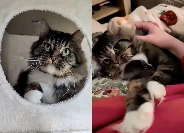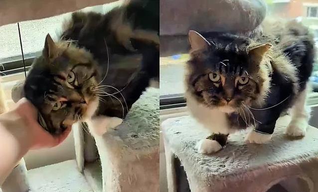 尤达刚到家时,缩在角落,眼神满是戒备。它的毛又脏又乱,背上的硬痂拉扯皮肤,走路都小心翼翼。好心人没犹豫,赶紧联系了蒙特利尔孤儿猫救援组织,想给它一个新开始。